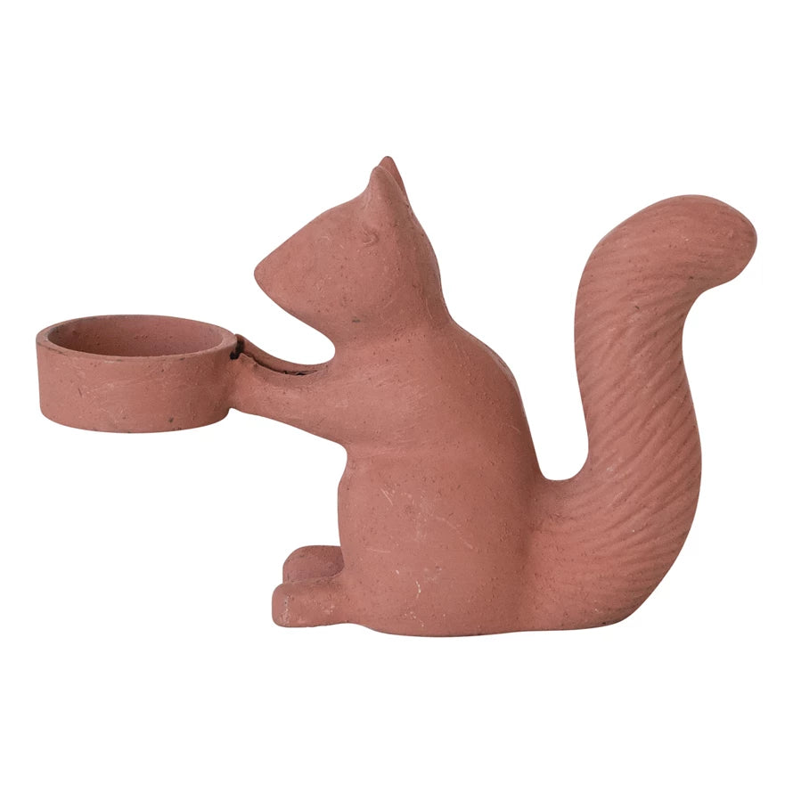 Cast Aluminum Squirrel Shaped Tealight Holder, Matte Sienna Color
