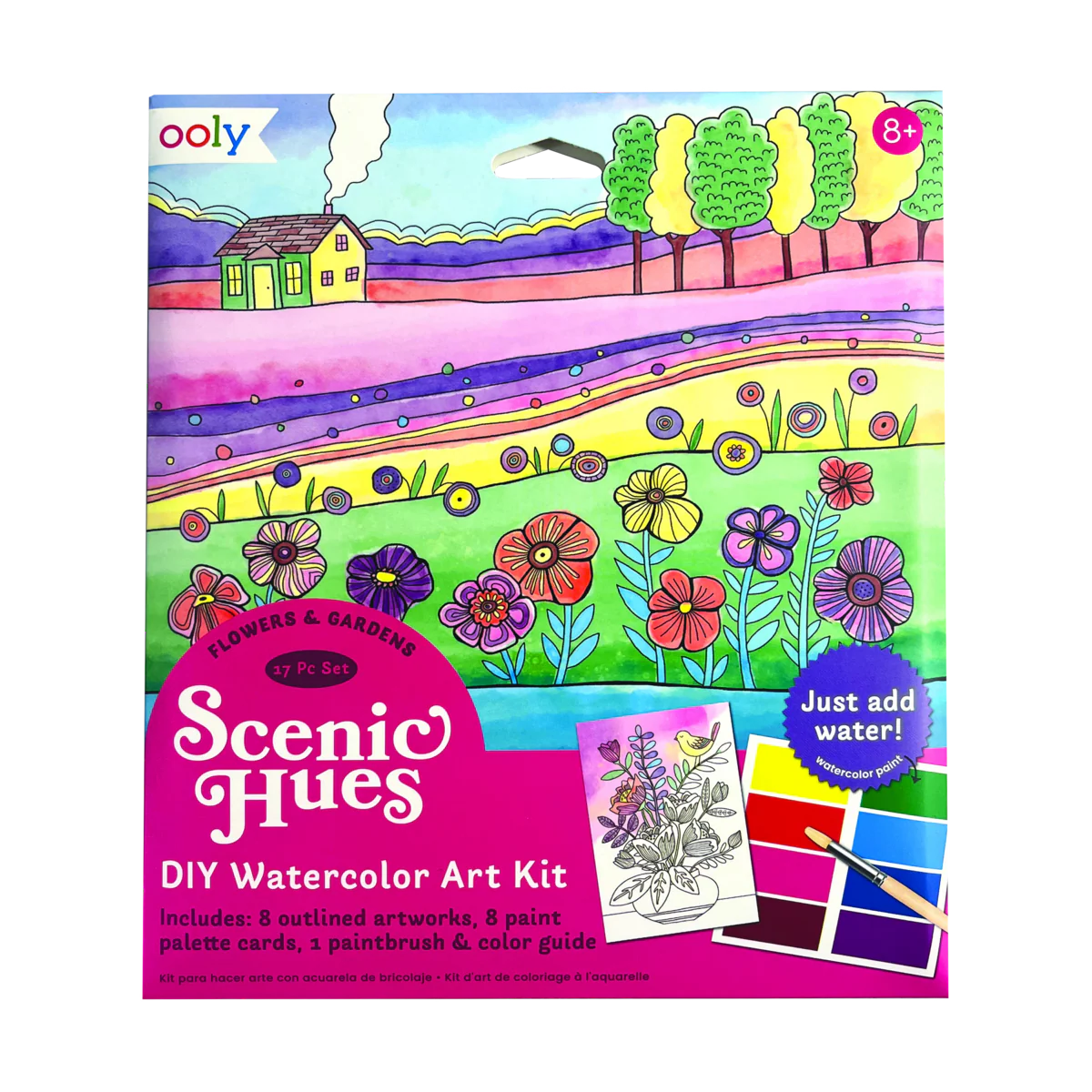 This watercolor art kit includes everything you need to create eight stunning watercolors. Taking inspiration from bountiful gardens, this kit includes 8 outlined watercolor postcards, 8 paint palettes, a paintbrush, and an optional color guide. Your masterpiece awaits!