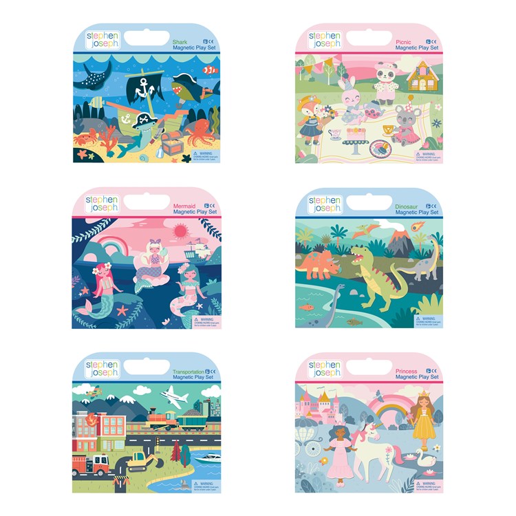 Create and play with these super fun Magnetic play sets. These kits come with 44 magnetic pieces to ensure your little one has hours of fun and possibilities while creating a world of their own. Each kit comes with a folding play board that also houses all the magnetic pieces for easy storage. These playsets are made of sturdy metal plates wrapped in heavy cardstock and can be cleaned with a damp cloth. Choose from 6 whimsical designs or collect them all to mix and match and let your imagination take flight.