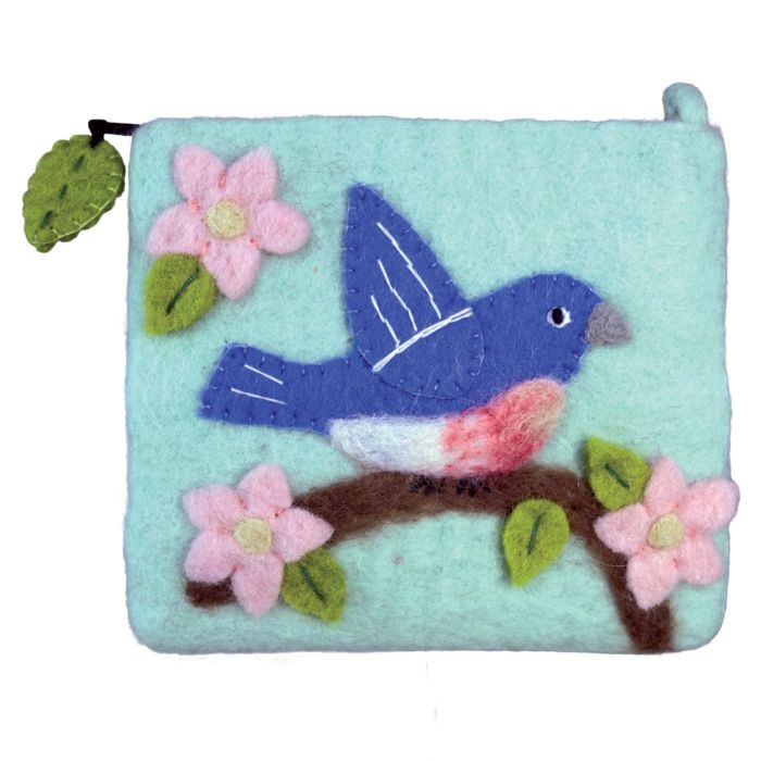 •The zipper pull has a unique decorative felt fob that echoes the design on the face of the purse.