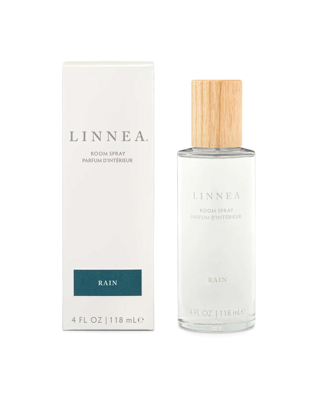 ROOM SPRAY This refreshing mist captures gentle rainfall and morning mist, bringing clarity and calm to any space. Housed in a white, texture embossed box and finished with a natural wood stopper, it delivers a clean, dewy scent while neutralizing odors with a few effortless spritzes.