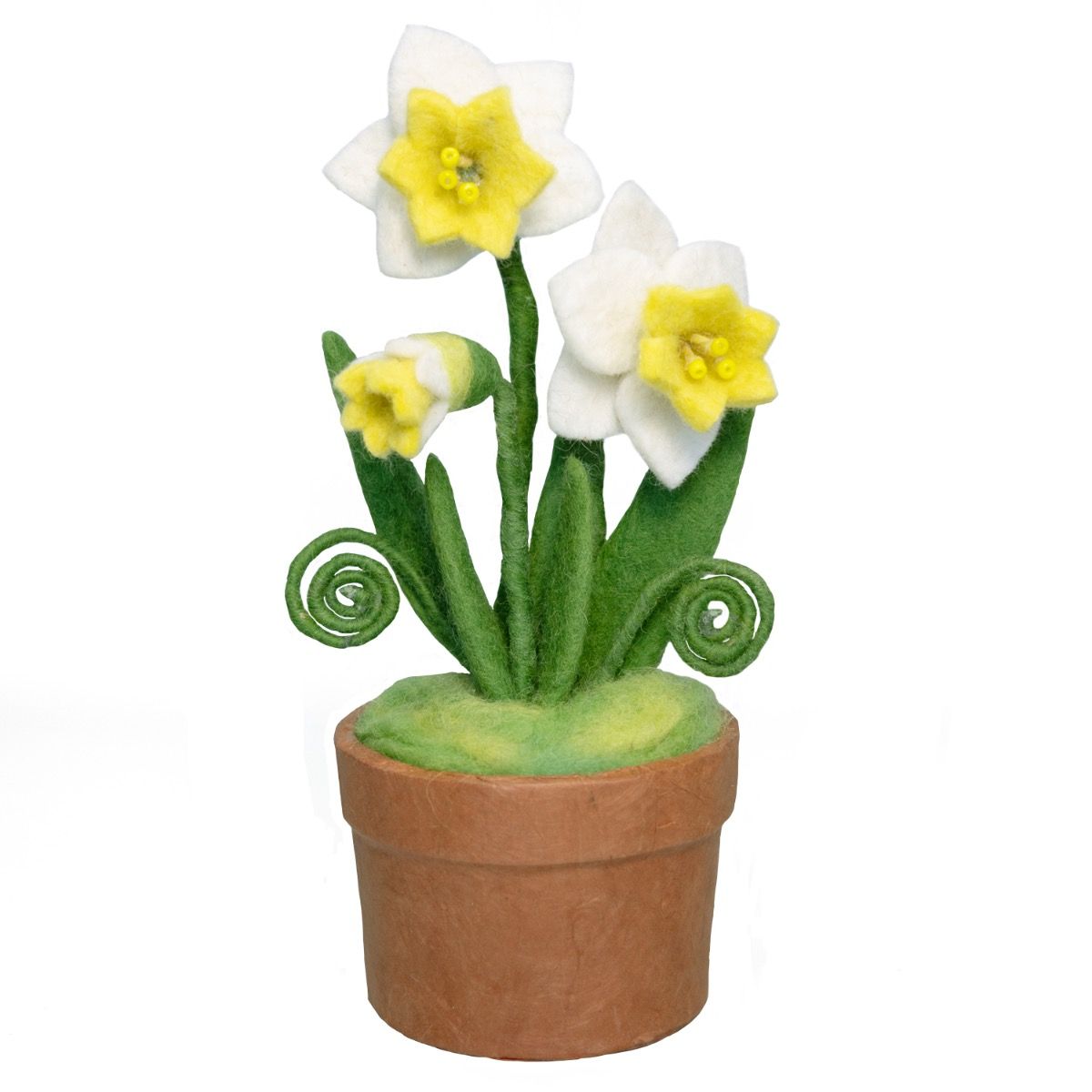 This happy hand-felted trio of flowers makes for charming decor, and blooms year round! The natural wool flowers are set into a sturdy eco-pot made of sustainably harvested Nepali paper over recycled materials. Pair with our other potted plants and ornaments. Designed by and made exclusively for dZi Handmade, member Fair Trade Federation.