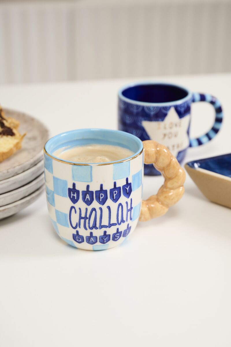The season for celebrating with cozy drinks & punny jokes is here, & these mugs make great companions for cold winter nights. Featuring punny phrases with deep blue details, this collection is a fun addition to Hanukkah decor.