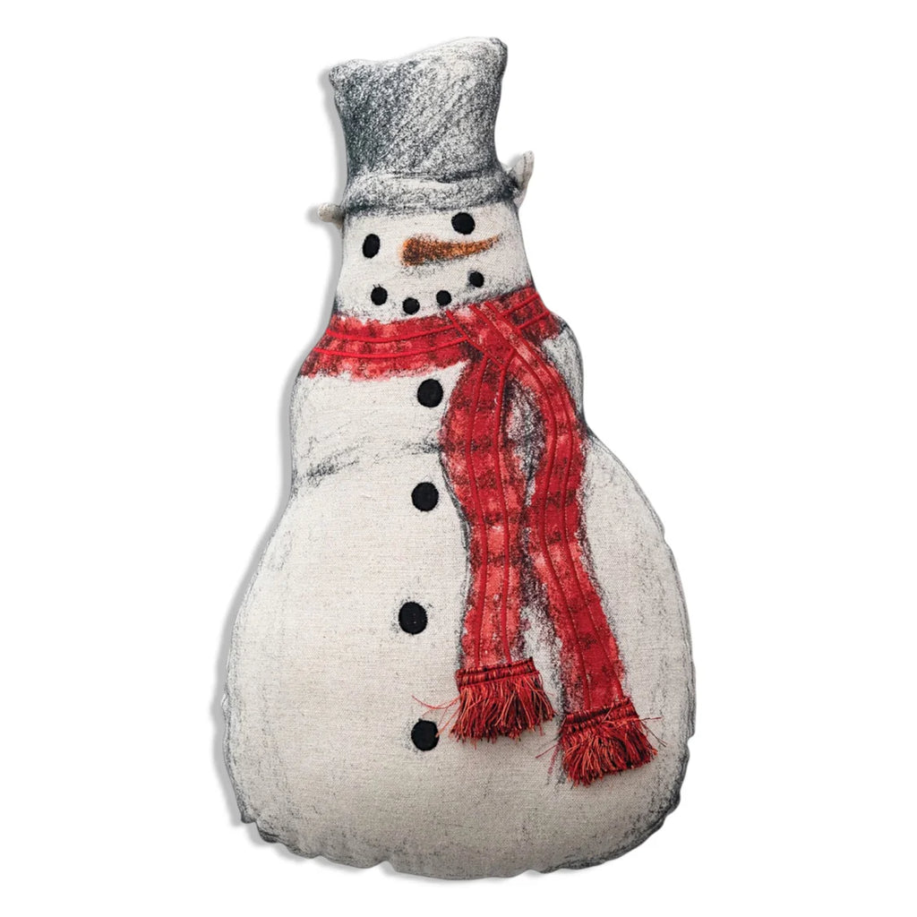 Snowman Shaped Pillow with Red Scarf and Embroidery