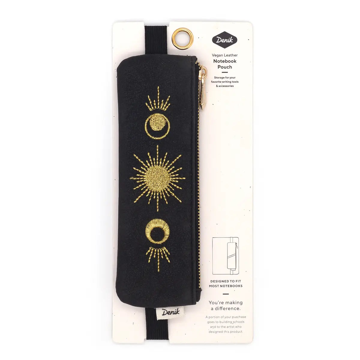 Keep your favorite notebooks and writing accessories together forever with our new notebook pouches. (Seriously, we're not sure why we didn't think of these sooner.) Embroidered design on soft faux suede, fully lined with an elastic band that fits around most notebooks.