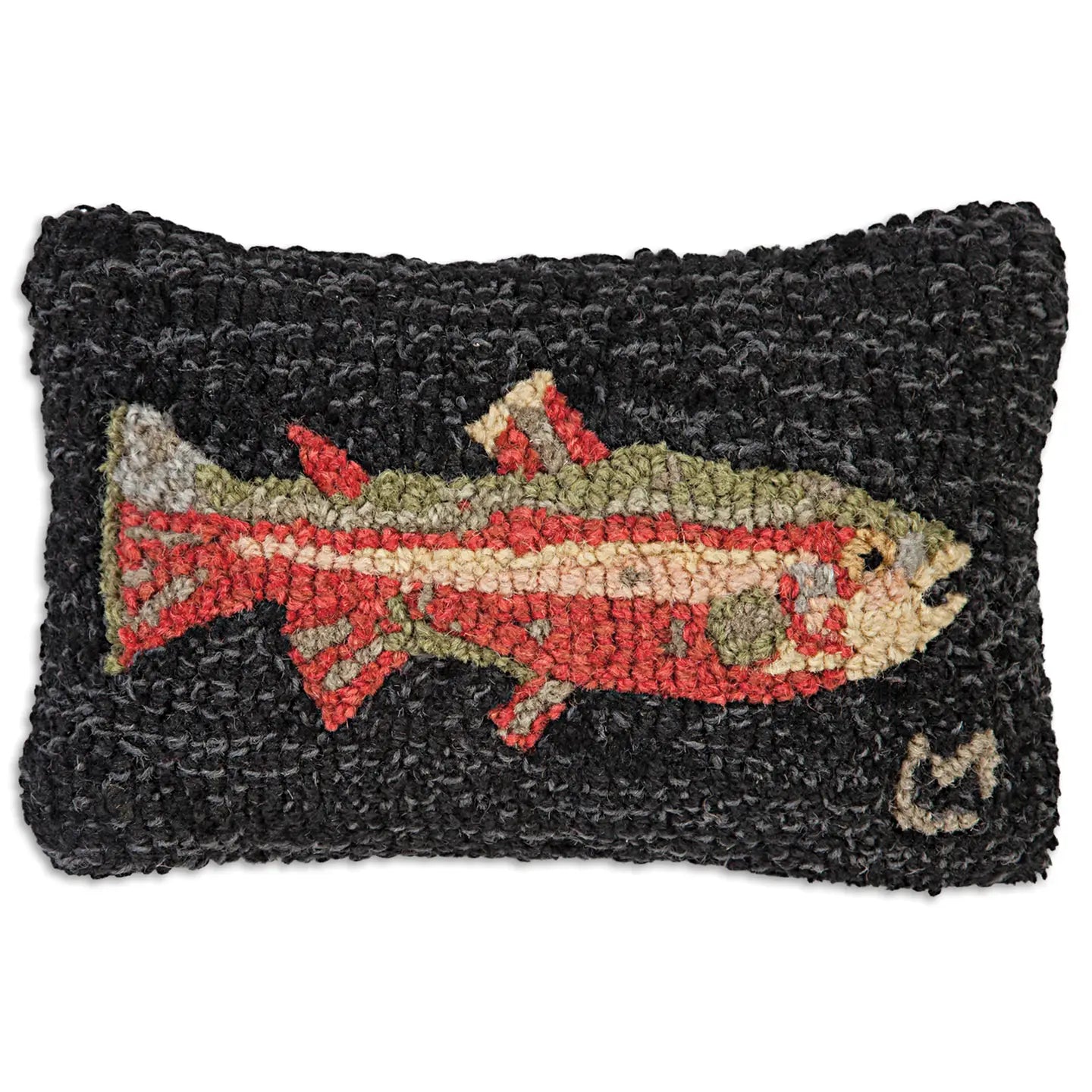 8" x 12" hand hooked pillow, made with 100% natural wool. Zippered velveteen backing with poly-fill pillow insert. Designed in Vermont by Laura Megroz. Handcrafted in India. Member of the Fair Labor Association.Care Instructions--