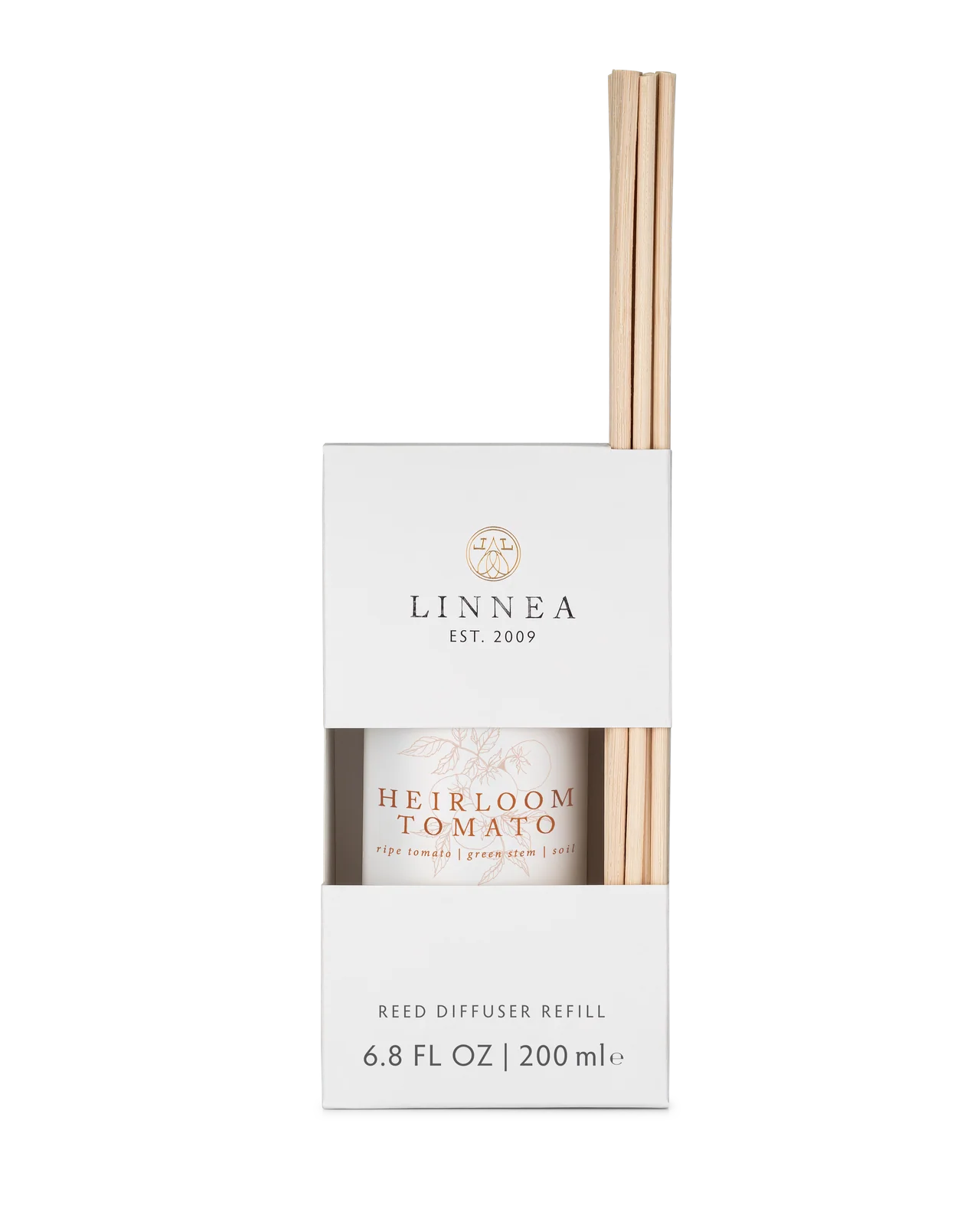 REED DIFFUSER KIT REFILL Elevate your space with the Heirloom Tomato Reed Diffuser Refill Set, a fresh and earthy scent profile with ripe tomato, green stems, and soil, evoking the essence of summer gardens and the tradition of homegrown harvests. This refill set ensures long-lasting fragrance while maintaining a sophisticated, airy ambiance. Refilling the hand-blown glass vessel is effortless. Simply pour the fragrance oil into a clean, dry vessel, insert the 10 natural rattan reeds, and allow them to absorb the scent. Flip the reeds regularly to refresh the aroma and rinse the vessel with warm, soapy water before refilling for best results.