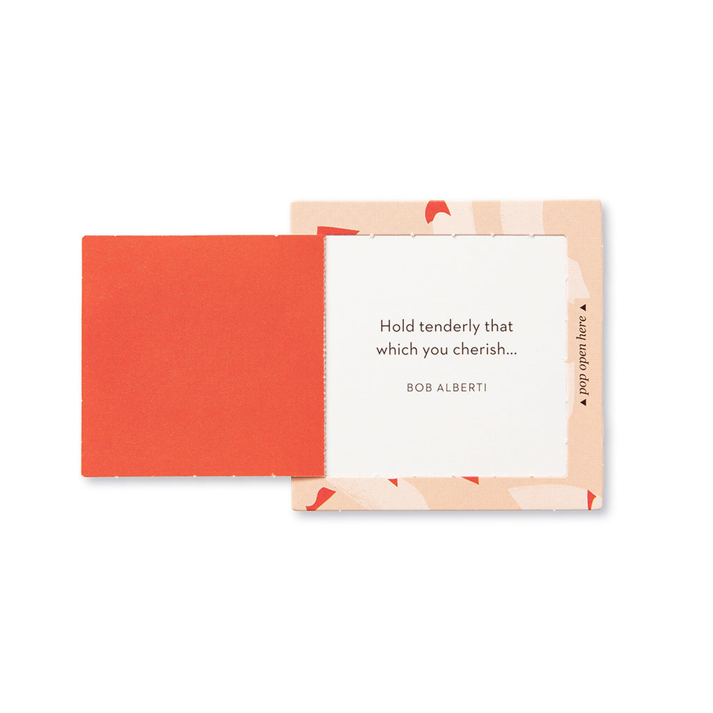 Little pop-open cards with messages inside were the first product we ever made. And they’ve been one of our most popular products ever since. Outside, you’ll find elegant designs to brighten your spirits and catch your attention. Inside, you’ll find timeless messages of inspiration to capture your heart.