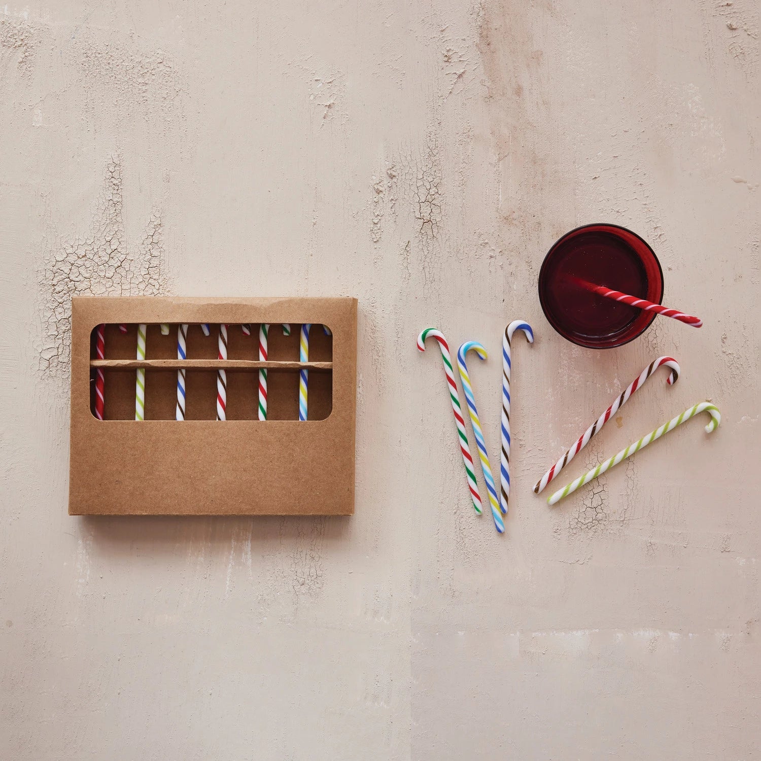 Presented in a kraft box, these candy cane stir sticks make for a thoughtful gift or a festive addition to any holiday collection. This boxed set of stir sticks is an ideal companion for any holiday beverages, from eggnog to hot cocoa.