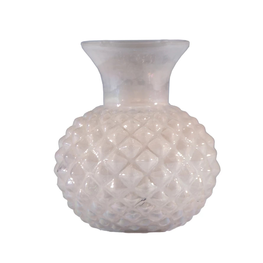 3-1/2" Round x 4"H Embossed Glass Hobnail Vase, Iridescent Finish, Blush Color