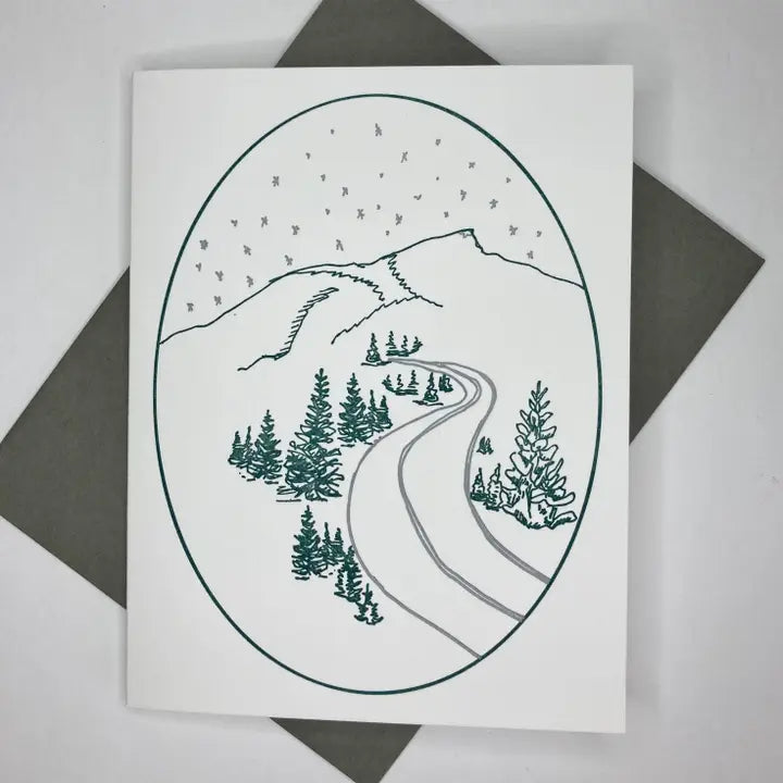 May Day Studio's newest holiday card features an original illustration of the iconic Vermont view of Camel's Hump and the Green Mountains! Blank inside for your own special message.