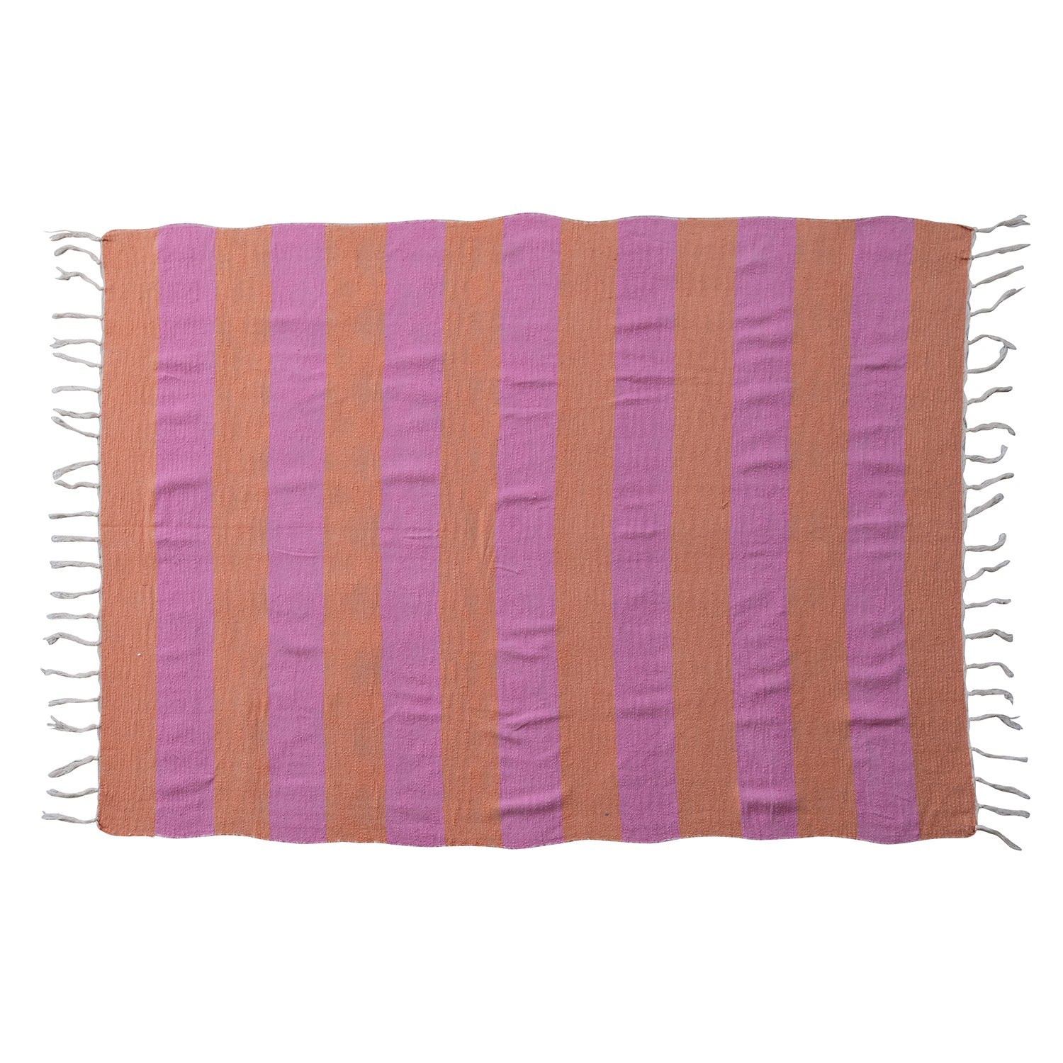 Add a pop of color to your living space with this vibrant pink and orange woven cotton slub throw. Measuring 60 inches long by 50 inches wide, this cozy throw is perfect for snuggling up on the couch or adding a decorative touch to your bed. The soft cotton material is both durable and comfortable, making it ideal for year-round use. Whether you're looking to stay warm on chilly nights or simply want to add a touch of style to your home decor, this throw is the perfect choice. Upgrade your space with this stylish and versatile throw blanket today! Its bright colors will bring a cheerful and inviting atmosphere to any room, while its soft and cozy texture will keep you warm and comfortable. This throw is not only a practical addition to your home, but also a stylish one that will enhance the overall look and feel of your living space.